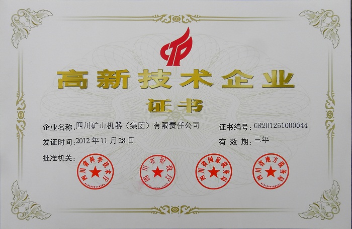 日前,從省有關(guān)部門獲悉,四川礦山機(jī)器(集團(tuán))有限責(zé)任公司喜獲“高新技術(shù)企業(yè)”稱號,并頒發(fā)了榮譽(yù)證書。